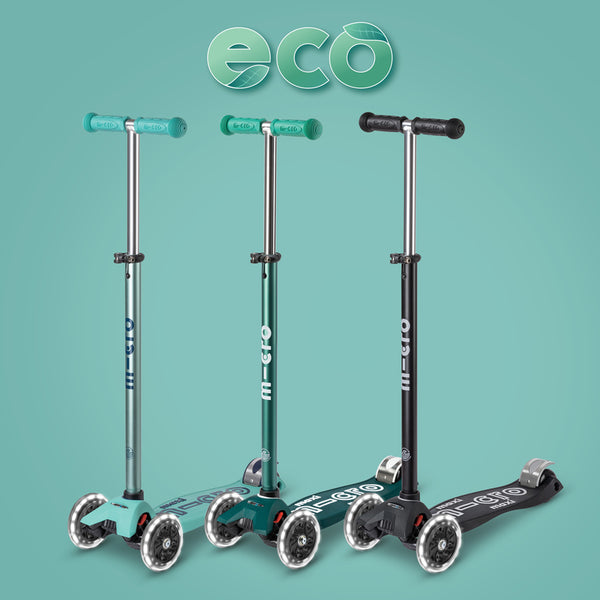 Vi har udviklet en ECO-serie, hvor fodpladen og bremsen er fremstillet af genanvendt plast fra havene, såsom fiskenet, reb og andet affald fra den maritime industri. Omkring 10% af plastaffaldet i havene kommer fra fiskeri. Hvert år efterlades omkring 640.000 ton net og andet fiskeudstyr i havene. En del af dette affald, som indsamles på lossepladser og derefter genanvendes, bruges til at fremstille Micro løbehjul fra serien ECO.