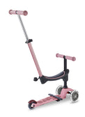 Pastel rosa Mini Micro Deluxe Rock & Go LED – Et unikt innovativt produkt, der kombinerer vippegynge og løbehjul i ét. Designet til børn i alderen 1 til 6 år, hvor det smarte modulsystem vokser med barnet. Fra en rolig, indendørs vippegynge, til en løbecykel med aftagelig styrestang, og til sidst et fuldt udstyret løbehjul. Rock & Go LED kan nemt forvandles til seks forskellige varianter, der følger og udvikler sig med barnets evner og behov.