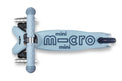 Pastel lyseblå Mini Micro Deluxe Rock & Go LED – Et unikt innovativt produkt, der kombinerer vippegynge og løbehjul i ét. Designet til børn i alderen 1 til 6 år, hvor det smarte modulsystem vokser med barnet. Fra en rolig, indendørs vippegynge, til en løbecykel med aftagelig styrestang, og til sidst et fuldt udstyret løbehjul. Rock & Go LED kan nemt forvandles til seks forskellige varianter, der følger og udvikler sig med barnets evner og behov.
