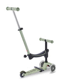 Olivengrøn Mini Micro Deluxe Rock & Go LED – Et unikt innovativt produkt, der kombinerer vippegynge og løbehjul i ét. Designet til børn i alderen 1 til 6 år, hvor det smarte modulsystem vokser med barnet. Fra en rolig, indendørs vippegynge, til en løbecykel med aftagelig styrestang, og til sidst et fuldt udstyret løbehjul. Rock & Go LED kan nemt forvandles til seks forskellige varianter, der følger og udvikler sig med barnets evner og behov.